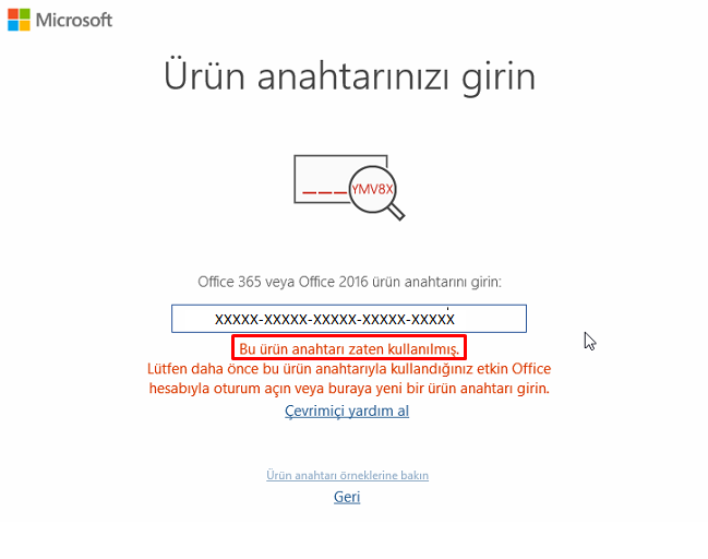 Office tarafında ise “zaten kullanılmış” mesajının genellikle hesapla çözülmesini söyler.